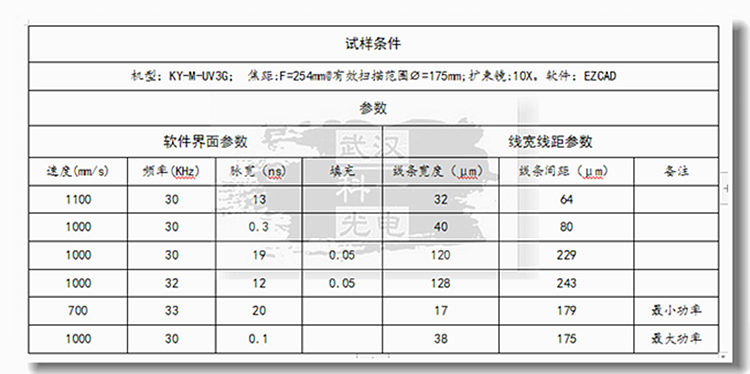 比如在不锈钢零件上进行较为浅显的标记(几组线宽和线距为微米层次的线条),没有手感,但用肉眼看有较高的分辨率。我们可以将试样情况描述如下: