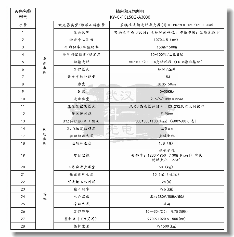 (以150IPG准连续型光纤光源、3030小幅面为例说明)