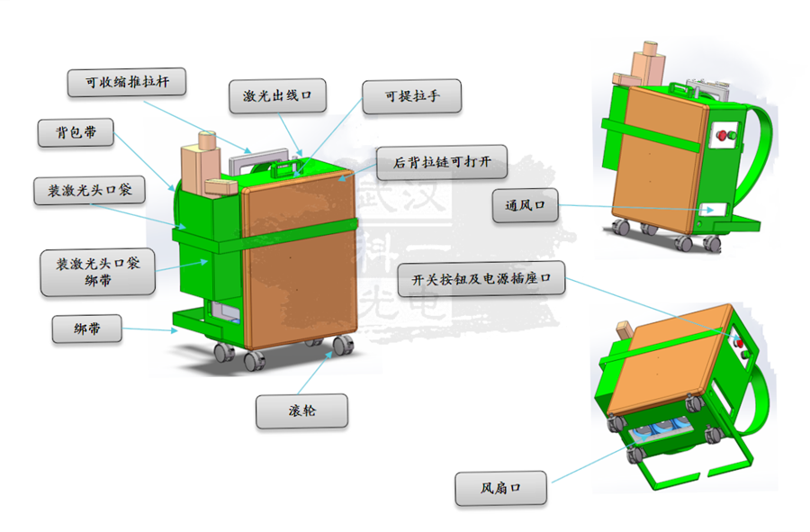 本设备脱胎于新一代激光清洗工艺,整体轻便灵活,方便于户外或有空间限制的场合进行金属除锈去漆工艺,