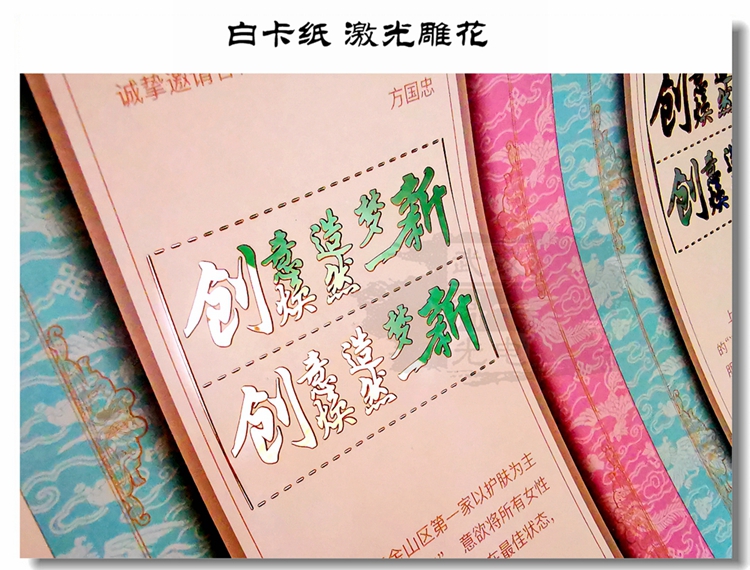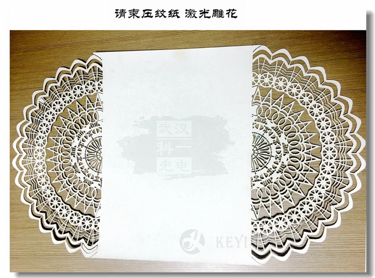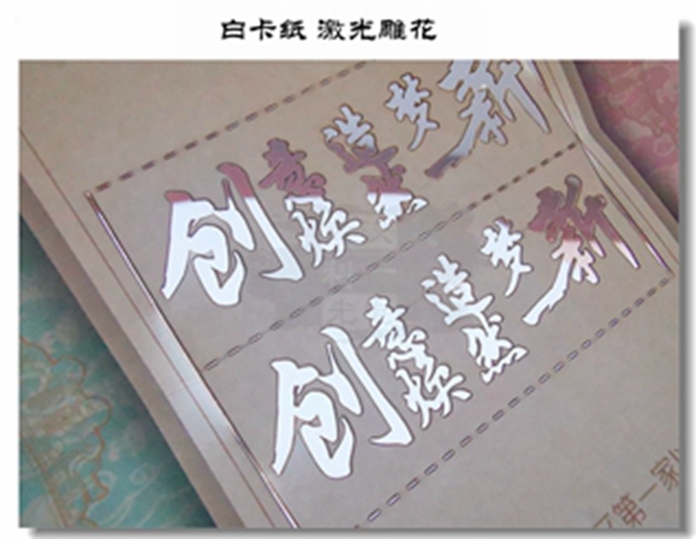 主要对各类纸制品进行激光雕刻和切割(厚度不大时)(当然亦可进行不透纸背的打标工艺)。广泛应用于纸包装、印刷、工艺品礼品等行业中。