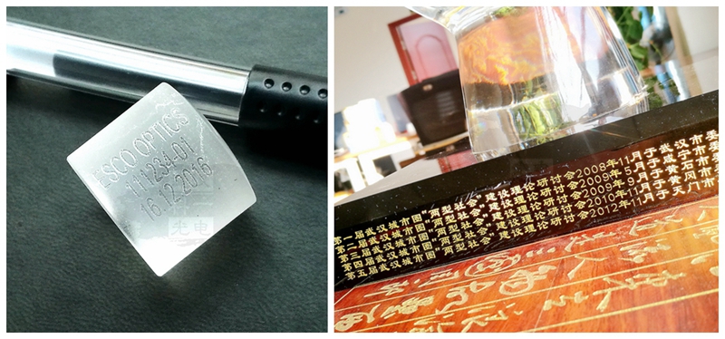 一般而言,玻璃材质,如钠钙玻璃和硼硅酸盐玻璃,熔成氧化硅玻璃和石英玻璃,回火玻璃、化学增强玻璃或普通钠钙浮法玻璃,能够采用30w以上封离型CO2激光源在其上留下或深或浅的图形、文字和数字等。