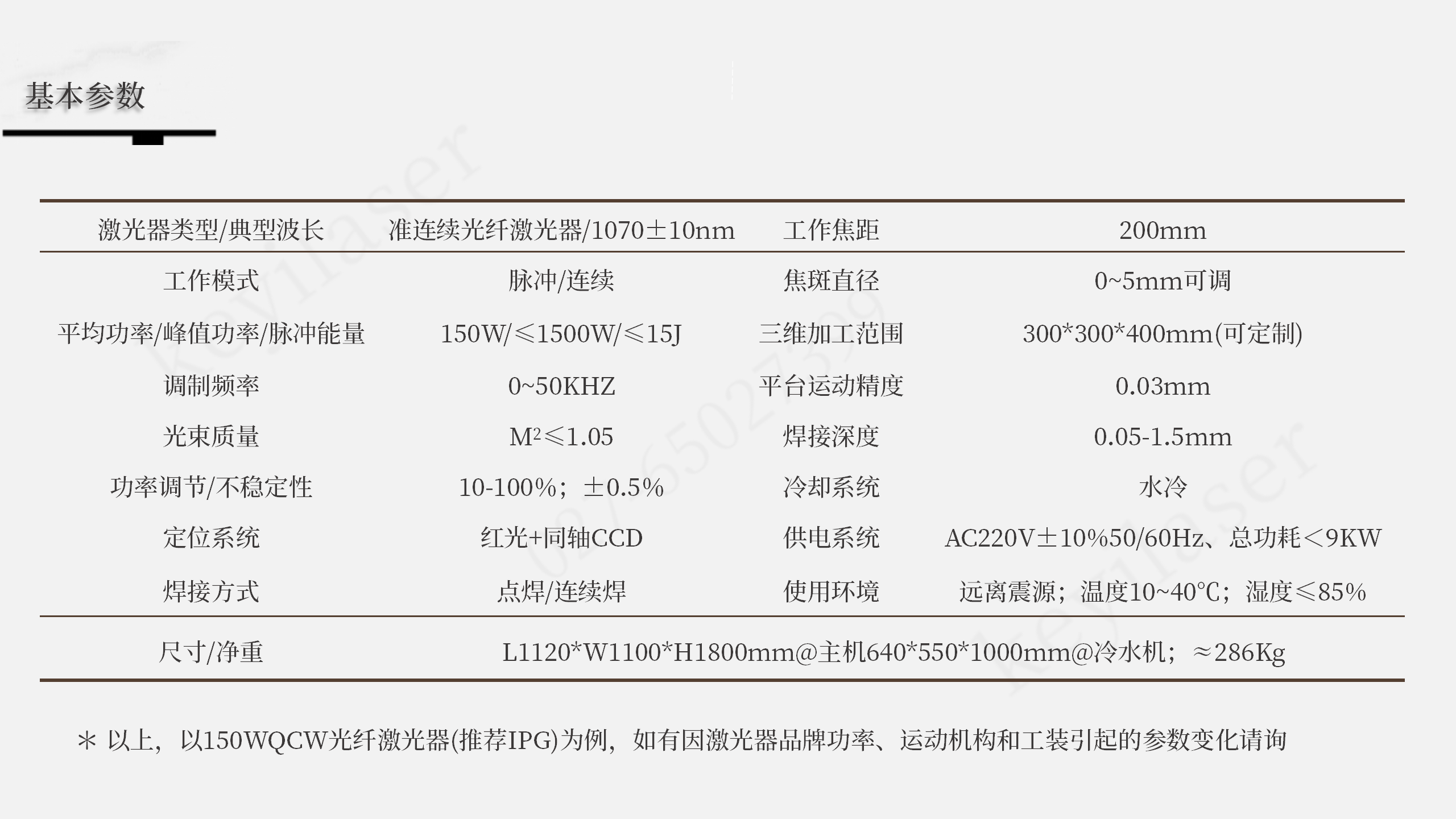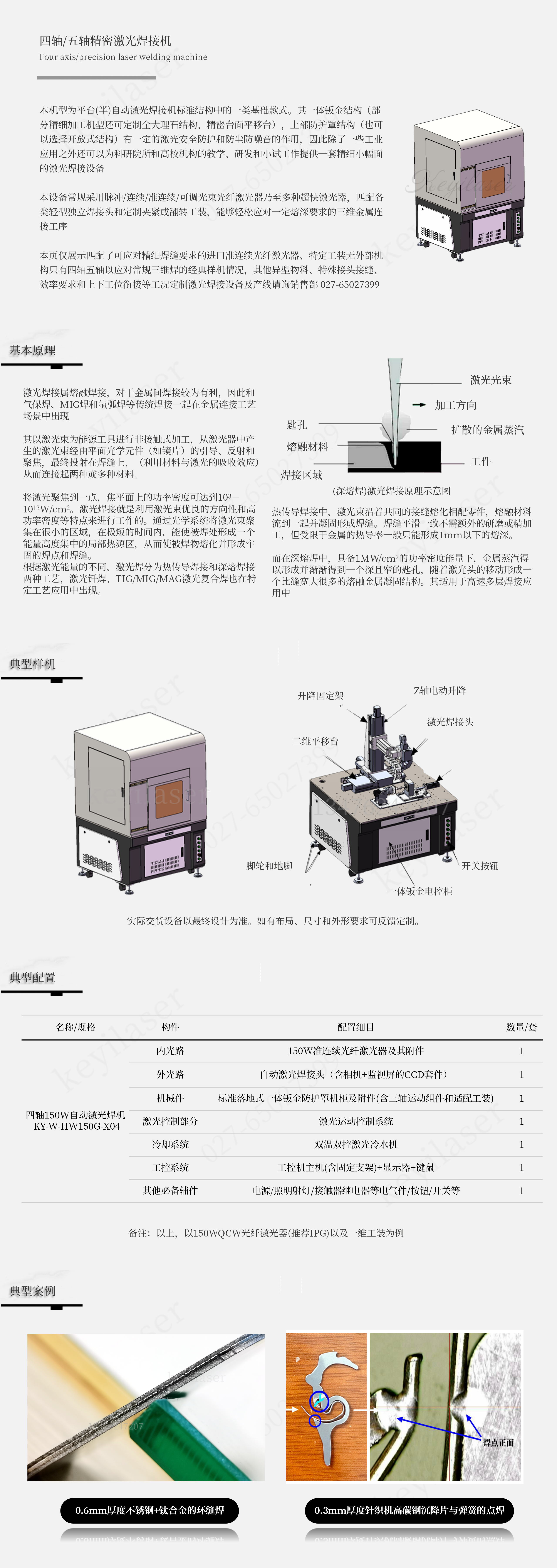 名称:精密激光焊接机、多轴激光平台焊机 规格:KY-W-FW150/300/450/600-X04/05 用途:适配金属薄材的精密焊接工艺中