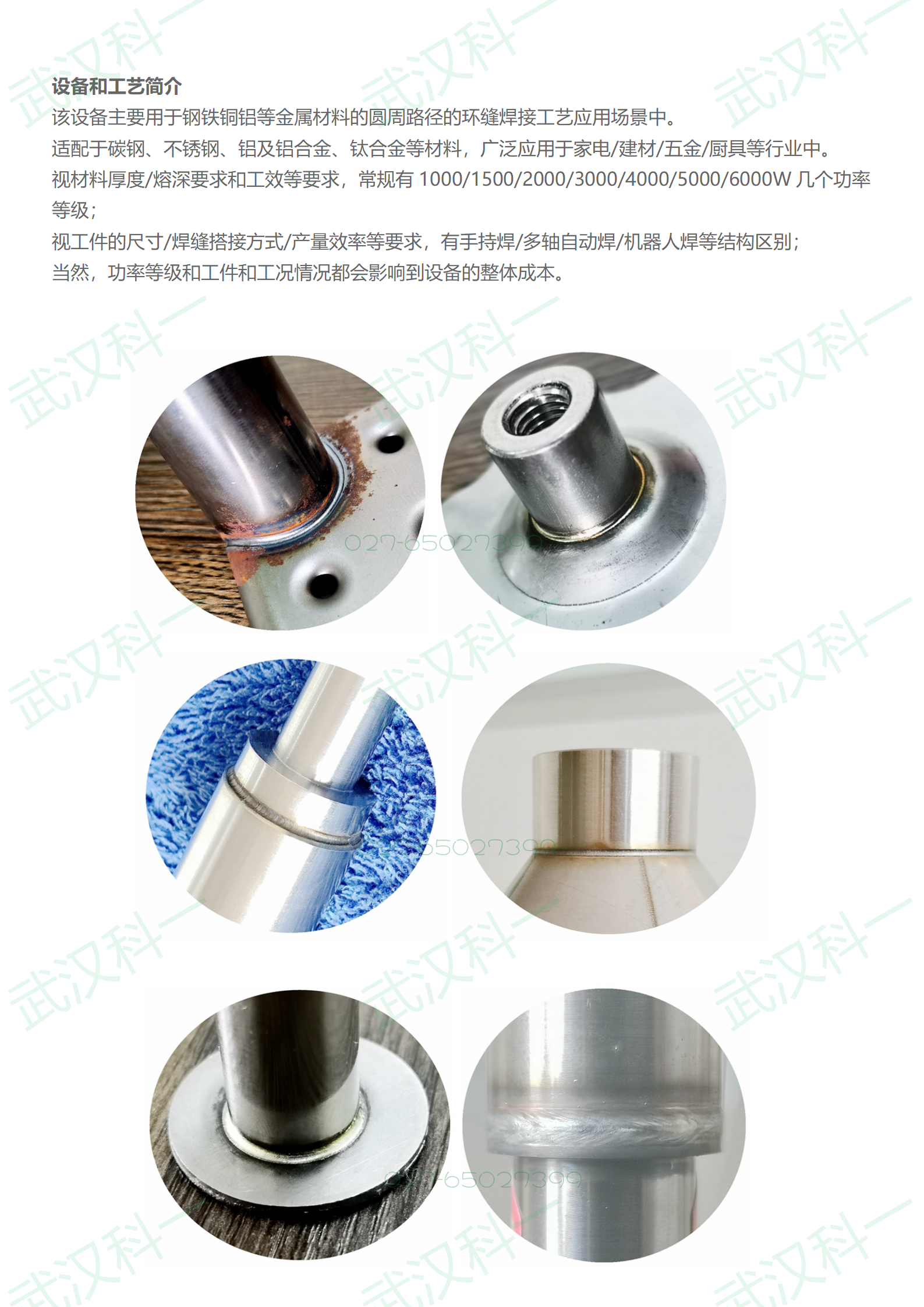 设备适用于常规金属材料的激光环缝焊/圆周焊工艺中。