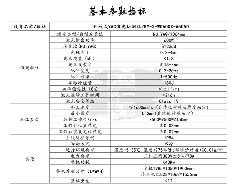 本设备主要由激光器系统、光学系统(含传输系统、聚焦系统及指示光系统)、激光电源系统、冷却系统、工控系统组成。